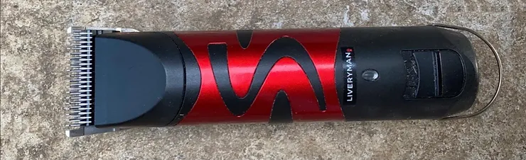 Maszynka Black Beauty marki Liveryman zasilana z akumulatora umieszczonego w pasku.