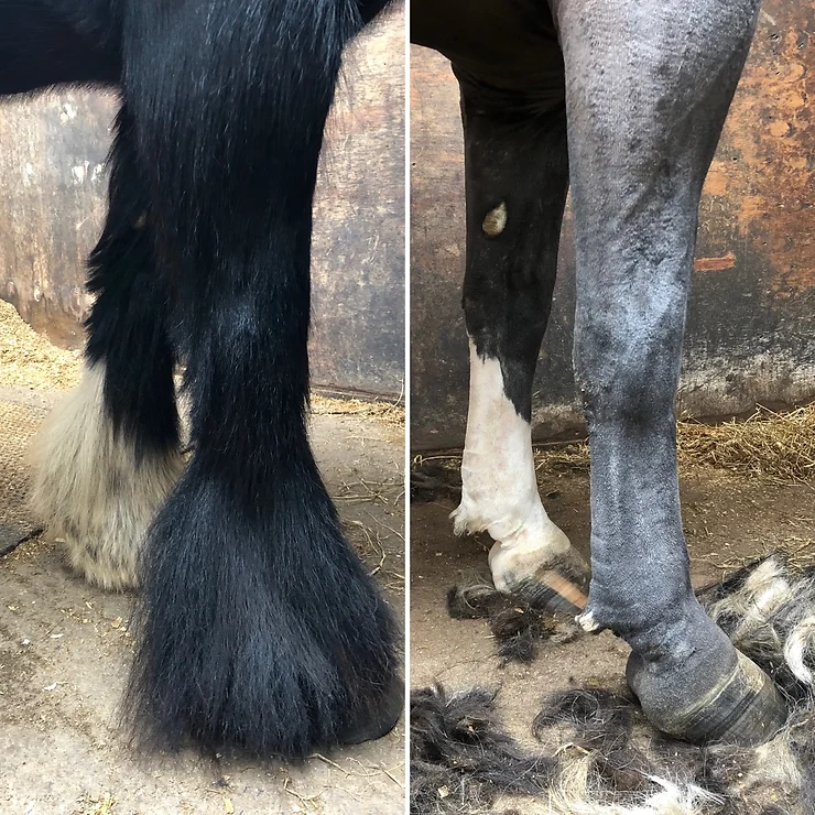 - Konie typu cob i cięższe rasy są bardziej podatne na dolegliwości dolnych odcinków kończyn, które często ukryte są pod gęstymi szczotkami pęcinowymi.